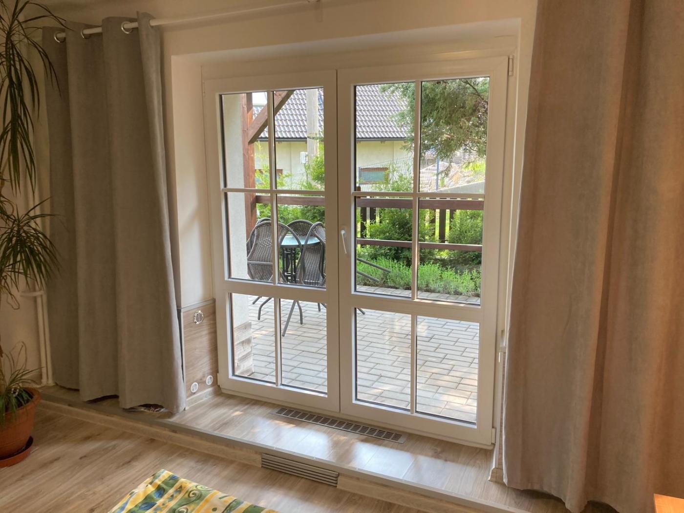 Apartment with Terrace. This double room features a seating area, patio, fridge and electric kettle. ;